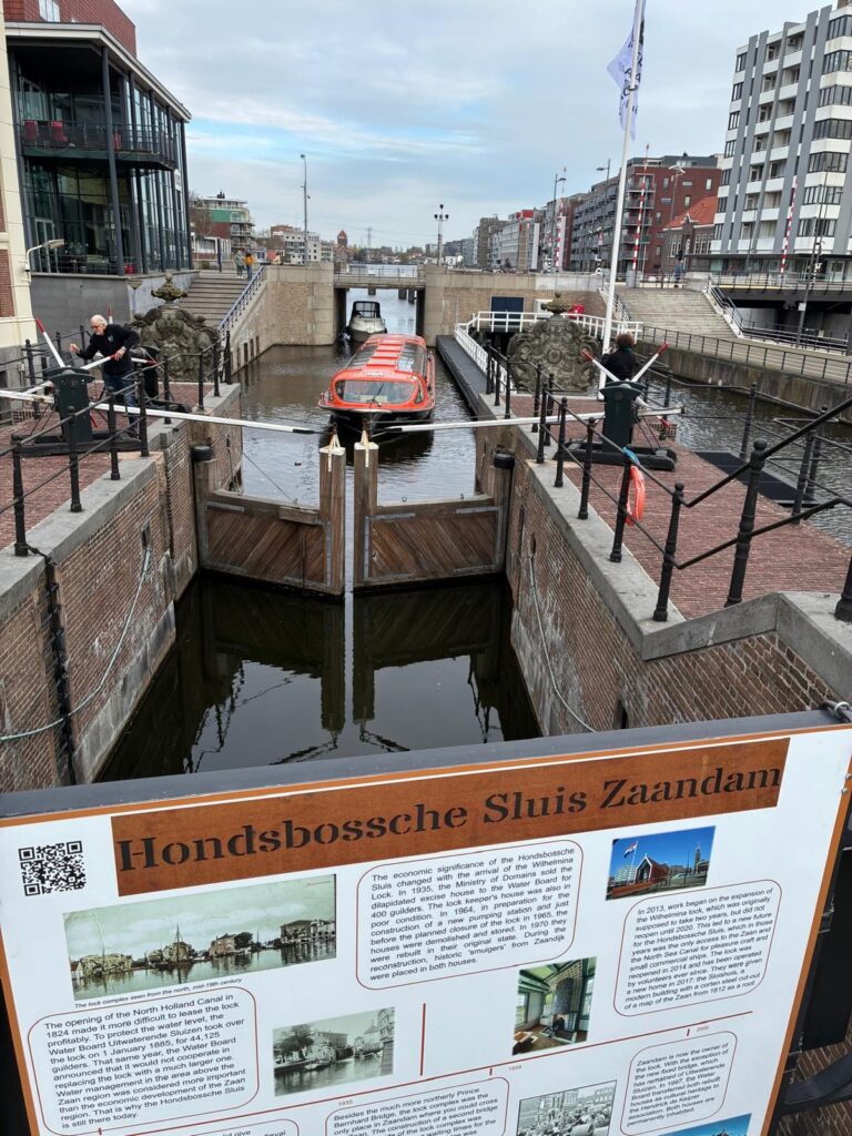 De Zaandamse overtoom, maart 2024: “Tussen 1609 en 1718 heeft er westelijk van de Hondsbossche Sluis een houten hellingbaan gelegen om schepen over de dam van de Binnenzaan naar de Voorzaan te slepen: de Zaandamse ‘overtoom’…..”